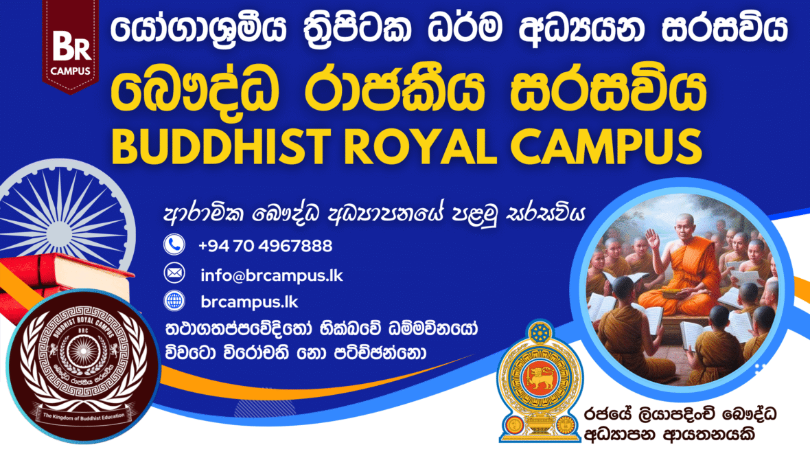 පරියාප්ති ප්රතිපත්ති ප්රතිවේධ යන ත්රිවිධ සද්ධර්මයෙහි නිස්සරණ අධ්යාශයෙන් මනාව පිහිටා ගත් උසස් බෞද්ධ පාඨමාලාවන්ගෙන් සන්නද්ධ වූ අපගේ බෞද්ධ රාජකීය සරසවිය විශිෂ්ට ධර්මඥානයක් සොයා යන ඕනෑම කෙනෙකුට අද්විතීය හා පරිවර්තනීය පරිසරයක් නිර්මාණය කර දෙයි. අප සමග එක් වන්න, පරියාප්තියෙන් ප්රතිපත්තියද ප්රතිපත්තියෙන් ප්රතිවේධයද කරා යන ගමනට එක්වන්න..